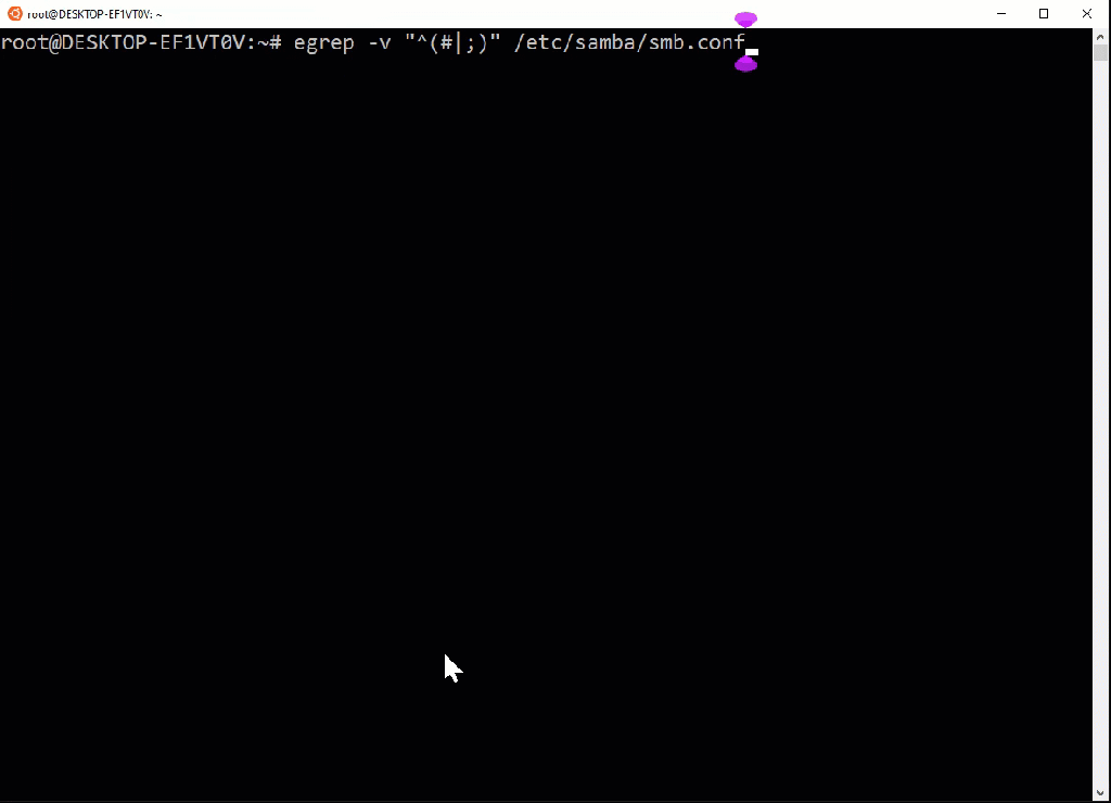 We could egrep -v "^(#|;)" /etc/samba/smb.conf to see the effective settings, but that will still leave ALOT of empty lines: